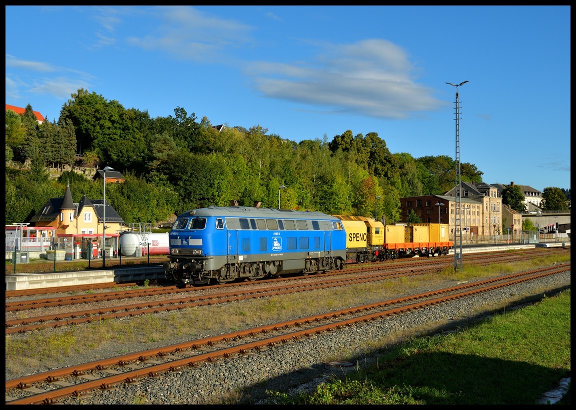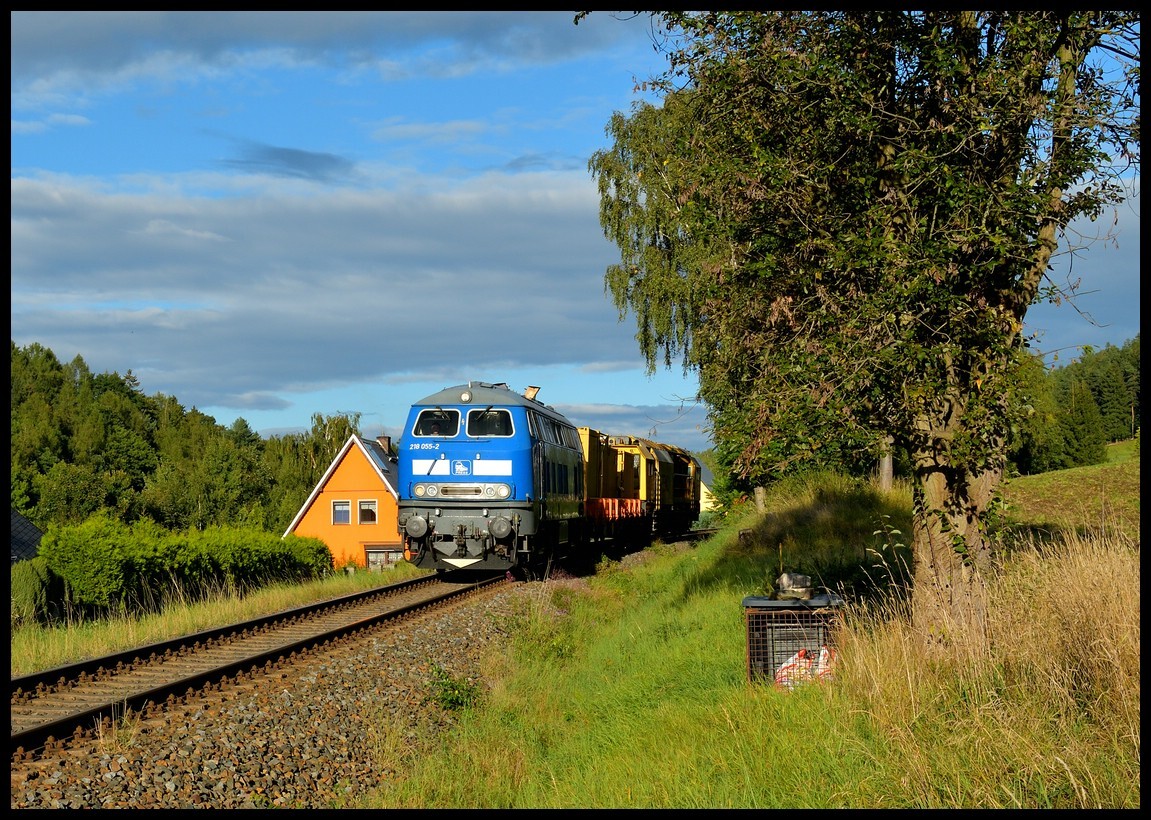 Das Wetter am Sonntag war sehr bescheiden, erst am späten Nachmittag besserte es sich. Die Meldung, das 218 0555 mit Schleifzug durch Chermnitz gen Aue ist, ließ mich die Kamera schnappen und nach Zwönitz fahren. Es zog immer mehr auf und die Hoffnung auf ein Sonnenbild in Zwönitz war da, bis etwa 30 Sekunden vor dem Zug war auch noch Sonne, der Rest dann am Bild denkbar...........dennoch gefiel mir das Bild
