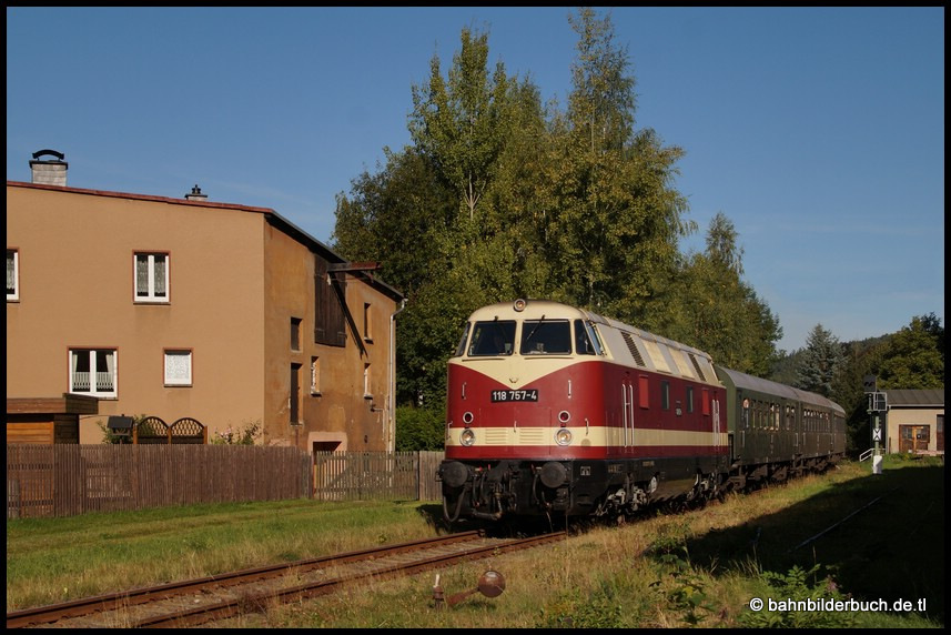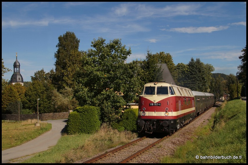 Letzter Schnappschuss aus Schlettau der Kirchenblick mit 118 757-4.
