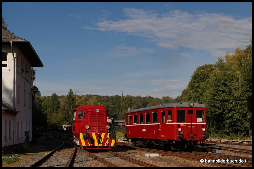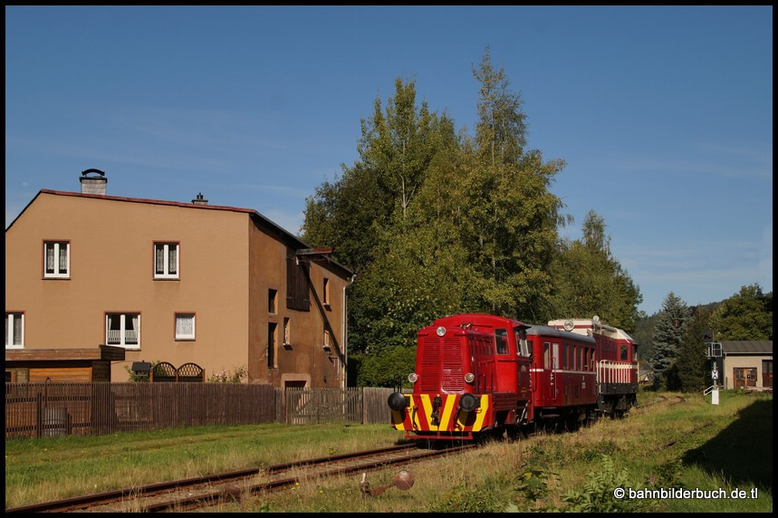 Wenig später und einige Kilometer weiter in der Einfahrt des Bahnhofes Markersbach ein weiterer Blick in die Vergangenheit.
