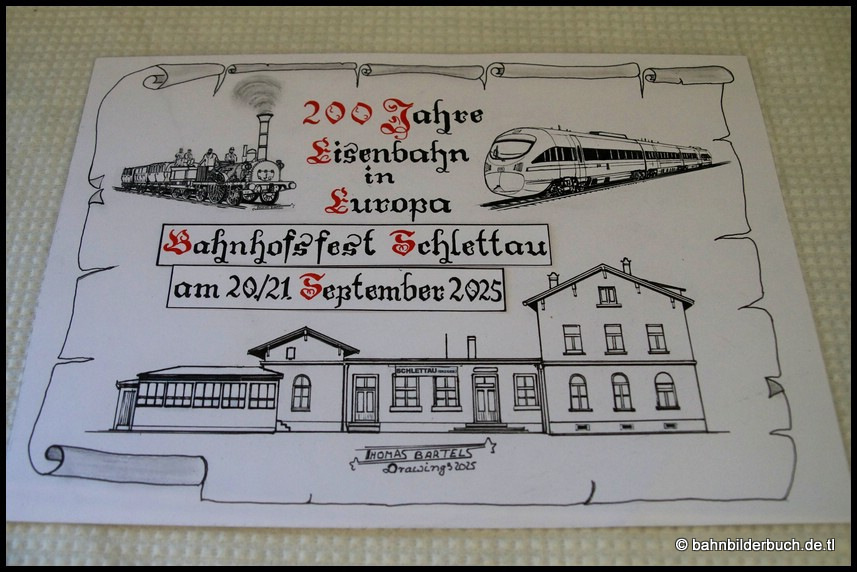 Am 27.September 1825 fuhr in England die erste Eisenbahn auf europäischem Boden zwischen Stockton und Darlington. Das zweihundertjährige Jubiläum dieses wichtigen Meilensteins in der Geschichte des Verkehrs feierte der Verkehrsverbund Mittelsachsen gemeinsam mit Partnern und Vereinen am 20. und 21. September 2025. Eine besondere Reise zu den Anfängen des Schienenverkehrs sowie der modernen Eisenbahn. Viele Sonderzüge auf den Gleisen sowie Einblicke hinter die Kulissen lockten groß und klein zu den Veranstaltungsorten. Unmöglich alle Aktivitäten aufzusuchen, geschweige denn zu dokumentieren. Im Vorfeld des Jubiläums fand außerdem vom 17.-19.09. zum vierten Mal die Digital Rail Convention in Annaberg-Buchholz statt. Die Themenbereiche digitalisierter und automatisierter Schienenverkehr sowie nachhaltige Mobilität standen 2025 im Mittelpunkt der Veranstaltung. Im Erzgebirge war zweifelsfrei der umfängliche Stundentakt auf der sächsischen BSg.-Linie (Buchholz - Schwarzenberg) das Highlight des Wochenendes. Erzgebirgsbahn,Pressnitztalbahn und Eisenbahnnostalgie Vogtland im Zusammenhang mit dem VSE (Verein Sächsischer Eisenbahnfreunde) stellten einen umfangreichen Bahnverkehr auf die Beine. Der Bahnhof Schlettau mit seinenem Eisenbahnverein Bahnhof Schlettau e.V. bildete neben den VSE im ehemaligen Bahnbetriebswerk Schwarzenberg / Erzgebirge die Mittelpunkte des Wochenendes.