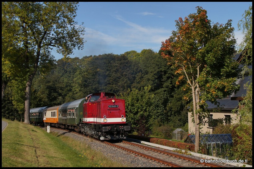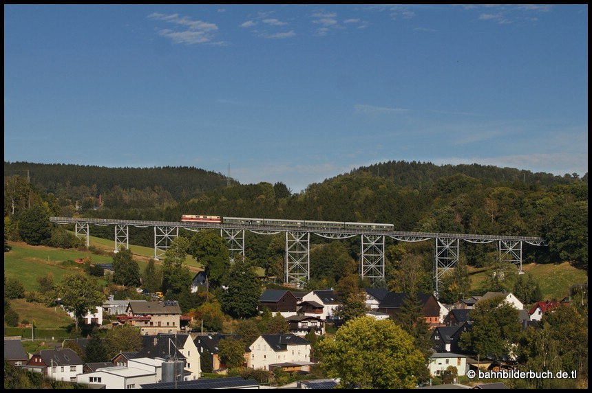 Am Samstagmorgen ging es als erstes nach Schwarzenberg Wildenau zum Raschauer Weg. Hier hat sich zumindest aus dieser Perspektive kaum etwas geändert. Die 118 757-4 der Pressnitztalbahn mit ihrem authentischen Zug am Haken sorgte hier für Reichsbahn Flair.