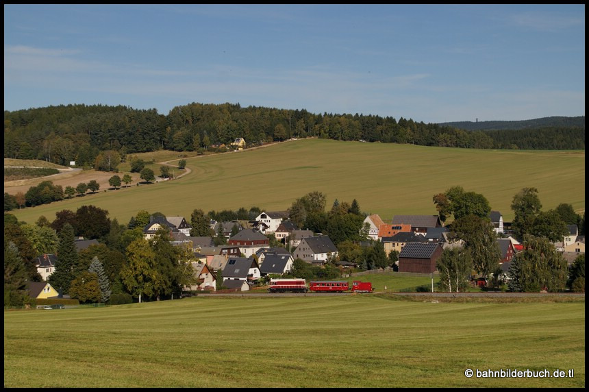 Die Ortslage von Raschau und die Ferkel der Eisenbahnnostalgie Vogtland.