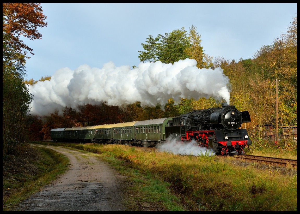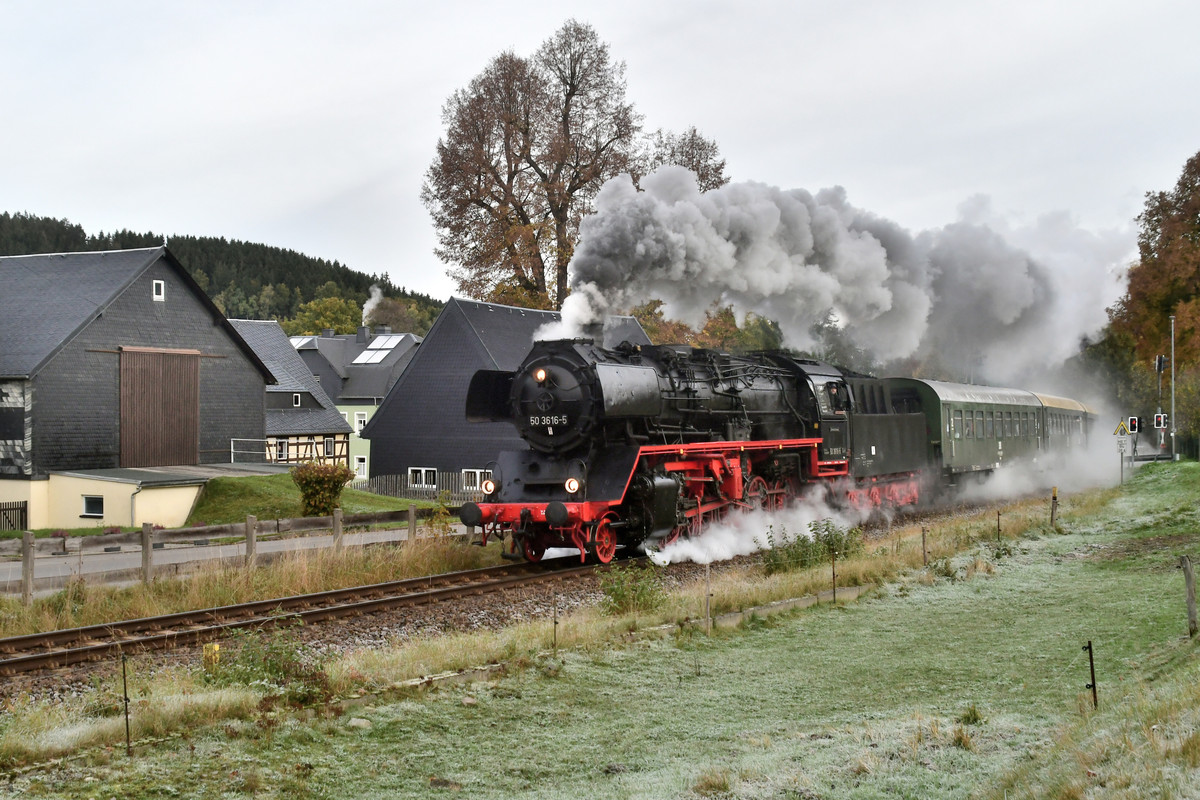 Heute fuhr die 50 3616 von Chemnitz durchs Zwönitztal nach Schlettau und zurück. Licht war zwar nicht unbedingt immer besonders fototauglich, aber die Temperaturen waren dampftauglich. Da bin ich mal los.