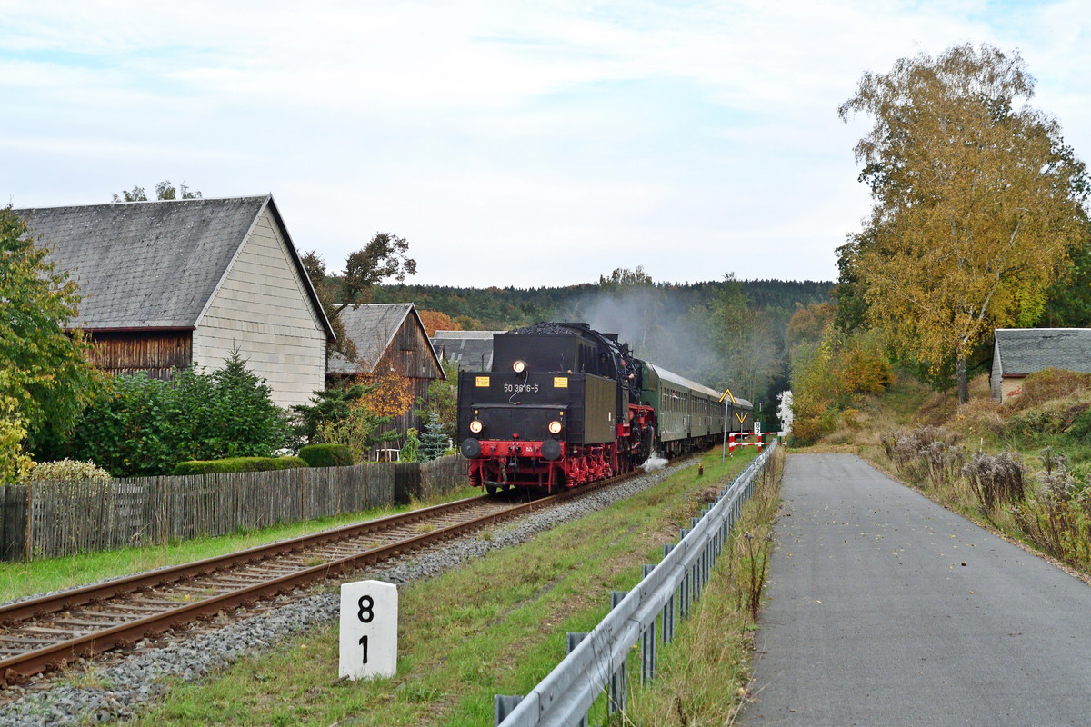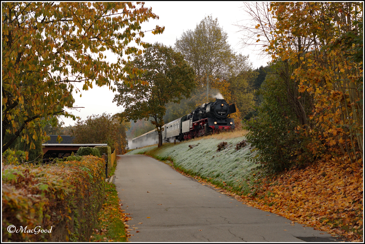 Nachdem ich die EAB letzte Woche ausgelassen habe, bin ich gestern auch mal beim SEM-Sonderzug gewesen, am Ende war ich sogar froh, das nur die 50 3616 dran war. Begonnen habe ich in Niederzwönitz an der CA, wo auf dem Boden noch die frostigen Spuren der Nacht zu sehen waren