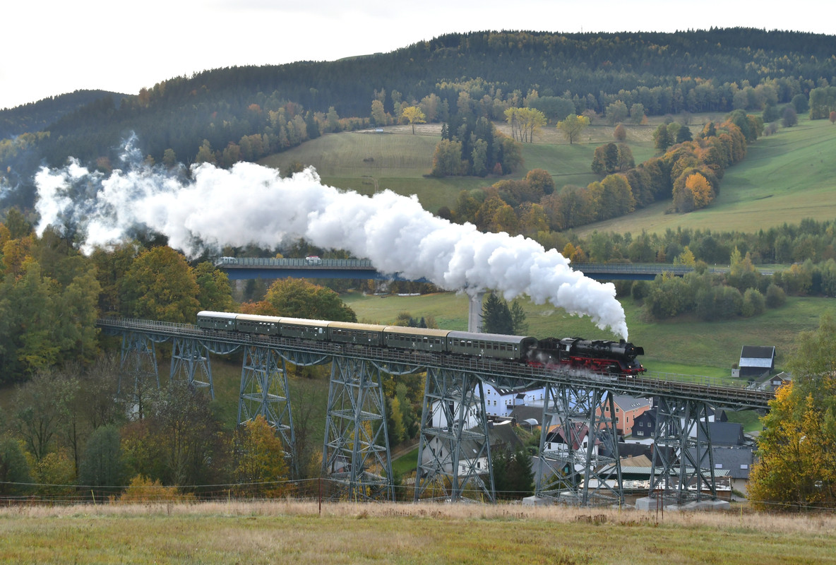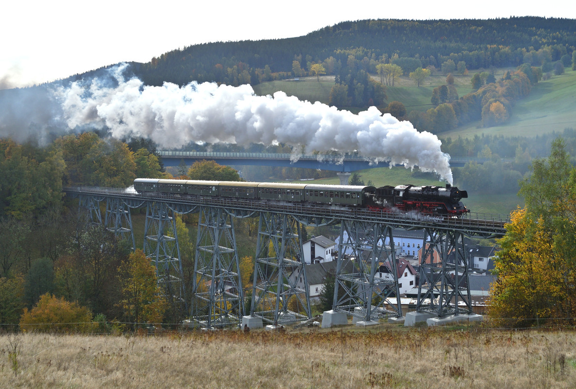 die Sperrfahrt aufs Viadukt auf der Schwimmbadbrücke Markersbach