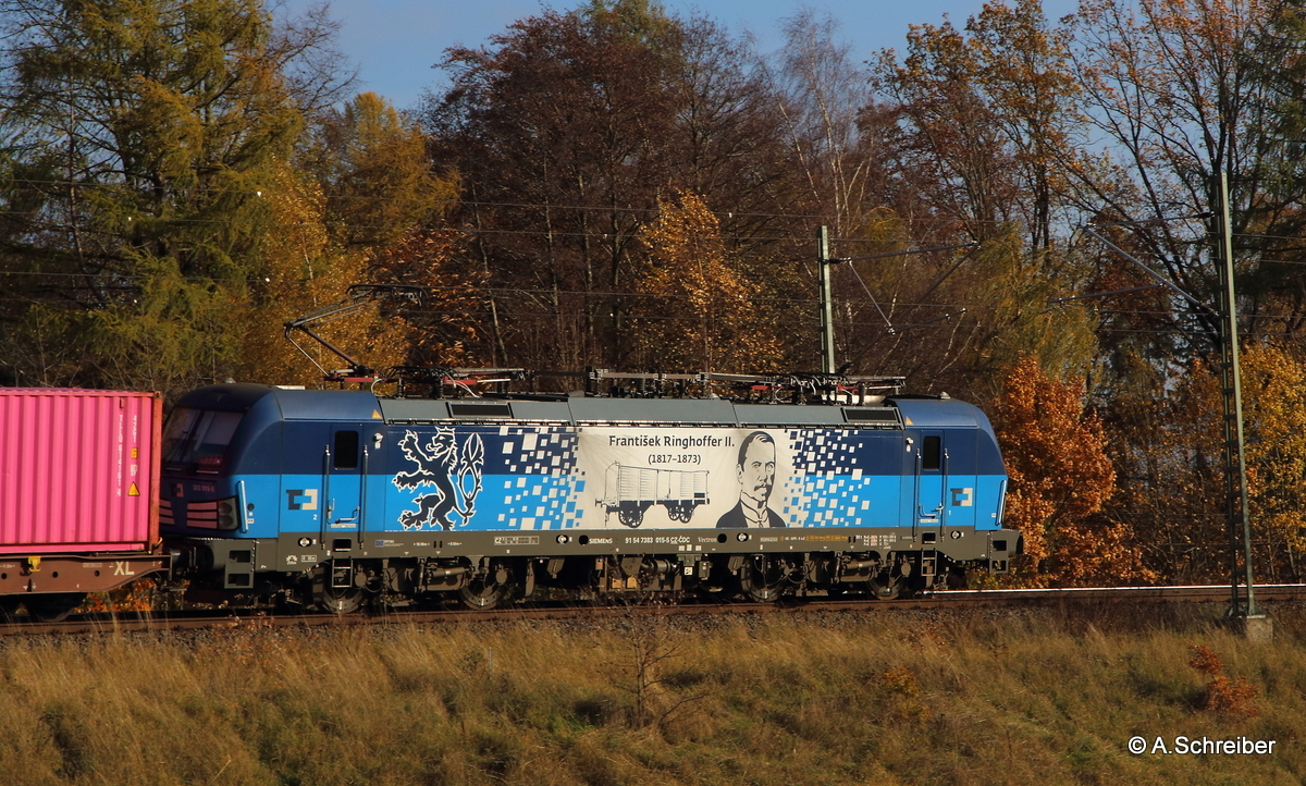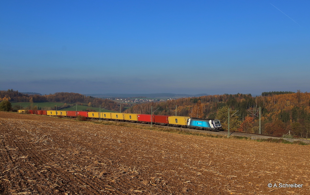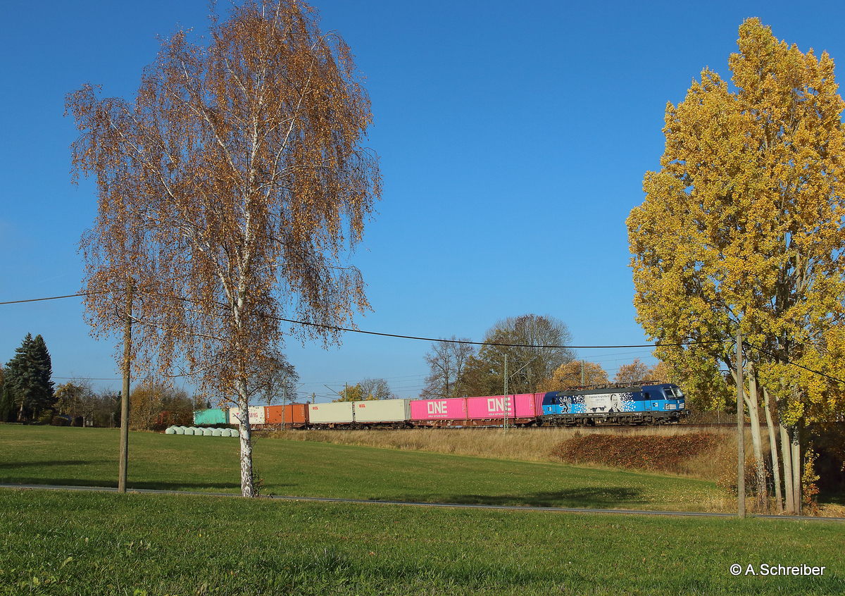 Am Reformationsnachmittag hatte 388 009 mit ihrem Containerzug leichtes Spiel in Oberjößnitz, auf der Steigung heraus von Plauen nach Mehltheuer und weiter nach Hof. Take it easy!