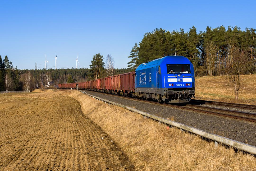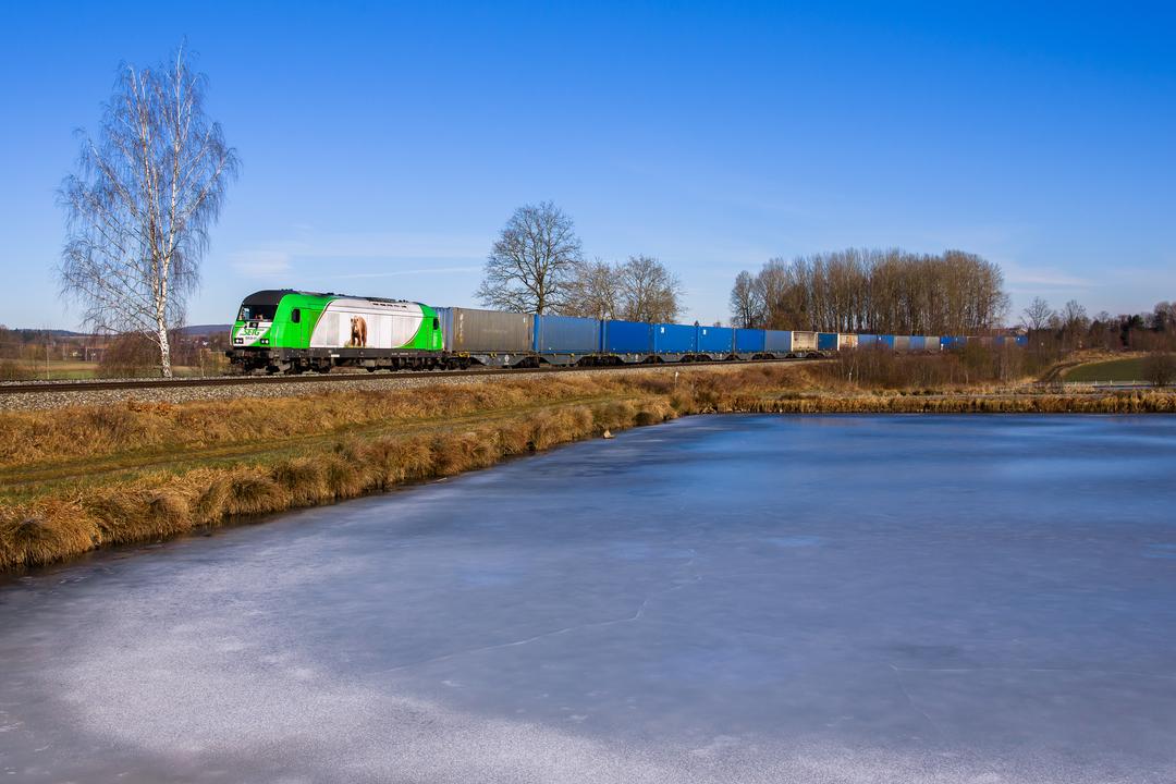 EVB Holzzug auf der Schiefen Ebene. Rund 5 Stunden mussten wir warten und dann zog der Schlonz auch noch rein, als der Zug endlich kam …