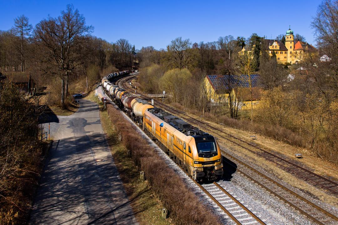 Slurryzug mit dem Schloss von Reuth bei Erbendorf