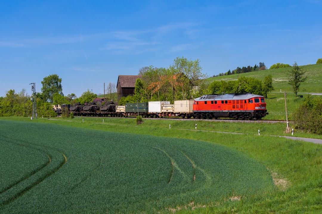 Ende April fuhren dann mehrfach Militärzüge durch Oberfranken. Ein paar schöne Bilder gelangen, ein paar gelangen nicht, weil ich auf Arbeit war oder das größte Highlight verschlief. 3 Kollegen hatten versucht anzurufen, es gab ideale Vormeldungen, aber ich bin an diesem Morgen ausgerechnet nochmal eingeschlafen und habe dadurch bei feinstem Licht einen voll beladenen Militärzug mit 233 verpasst. Zeitlich fuhr er perfekt vor der Arbeit. Man, habe ich mich geärgert. Aber widmen wir uns lieber den Erfolgserlebnissen.