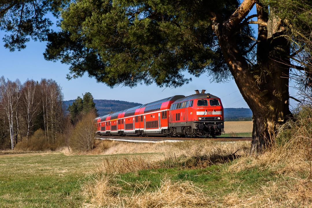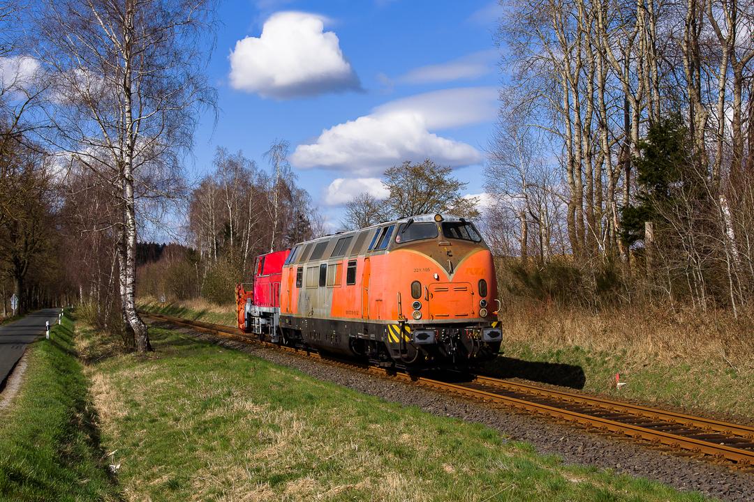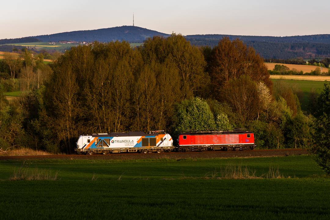 Ein großes Highlight war für mich 233 493, da eine gelbe Bahnbauludmilla für mich Premiere war. Die Wolken lösten sich rechtzeitig auf, so dass ich den Zug bei Marktleuthen ablichten konnte.