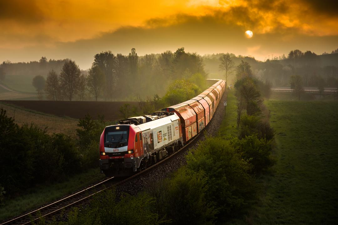 Ich glaube, es ist überflüssig zu erwähnen, was das Bild hier für ein Krimi im Morgengrauen war. Umgeleiteter MEG Gipszug bei Sonnenaufgang kurz vor Marktschorgast.