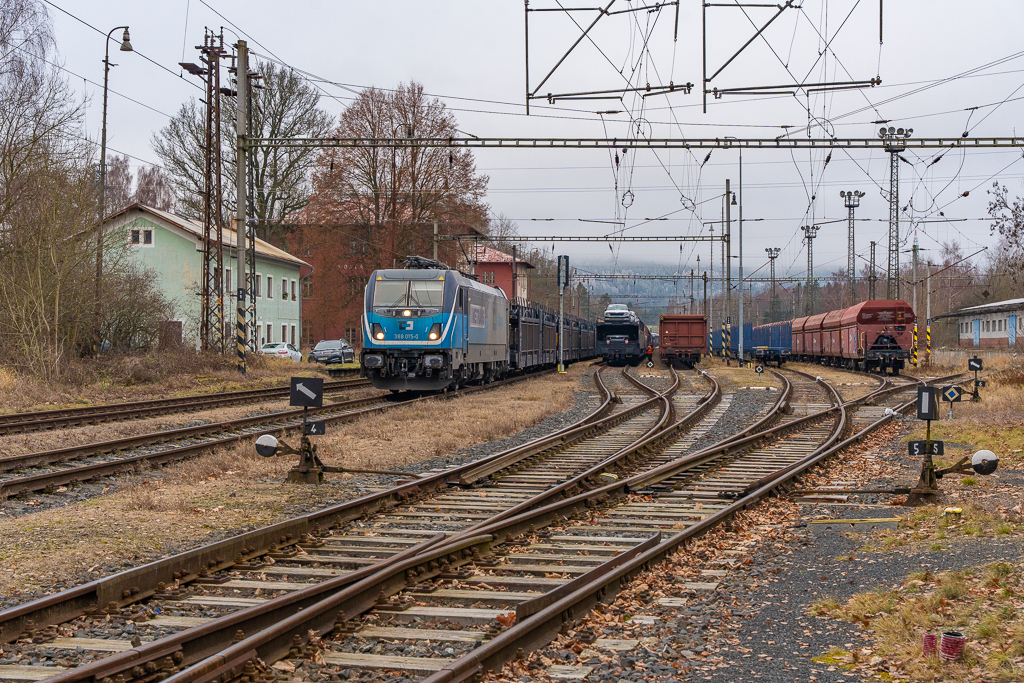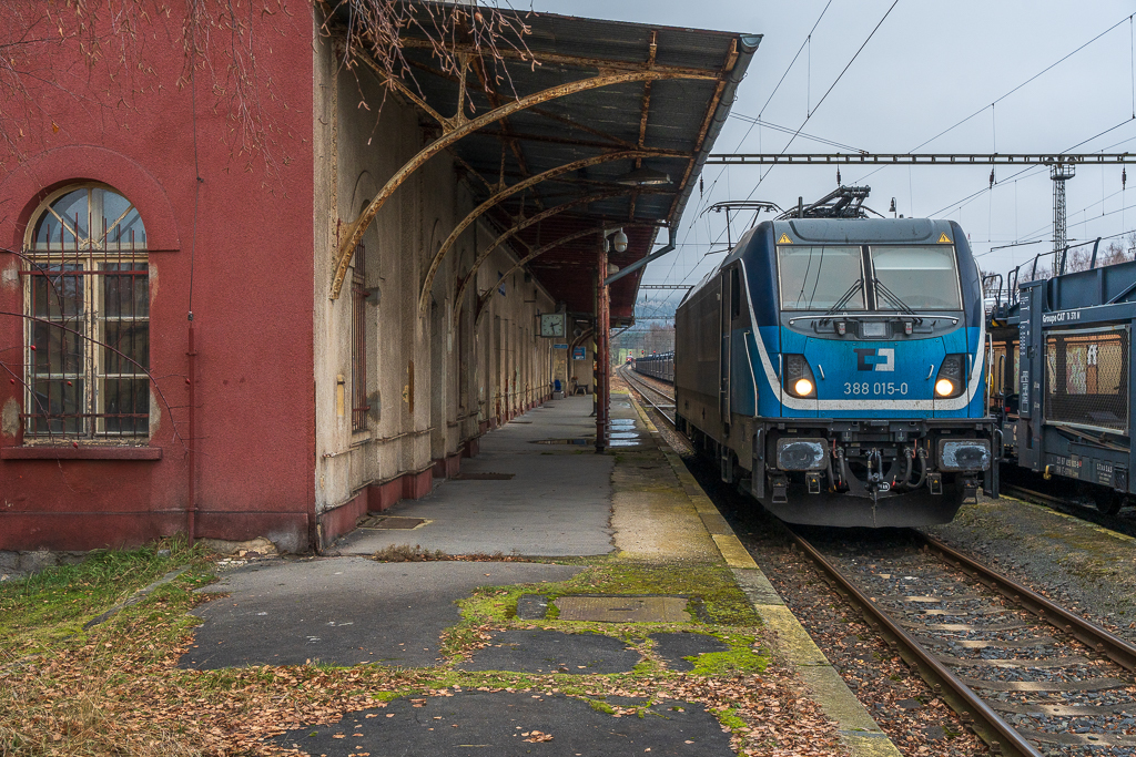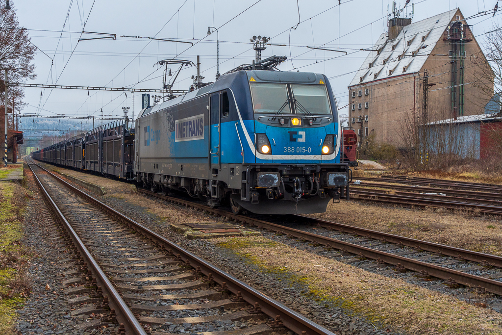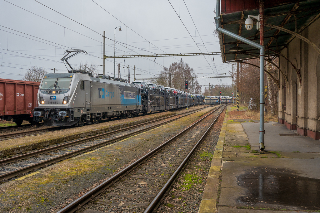 Vollautozug mit CDC 388 015 Einfahrt Vojtanov