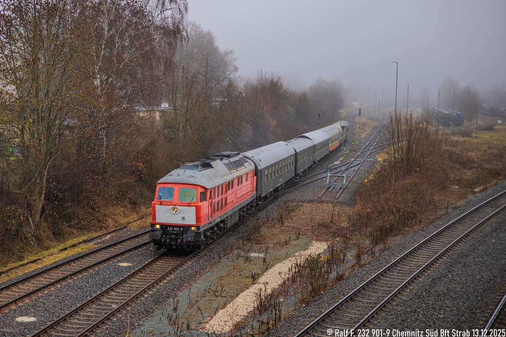 Kurze Zeit später kam der Zug aus Leipzig-Plagwitz mit 232 901-9 aus der Gegenrichtung.