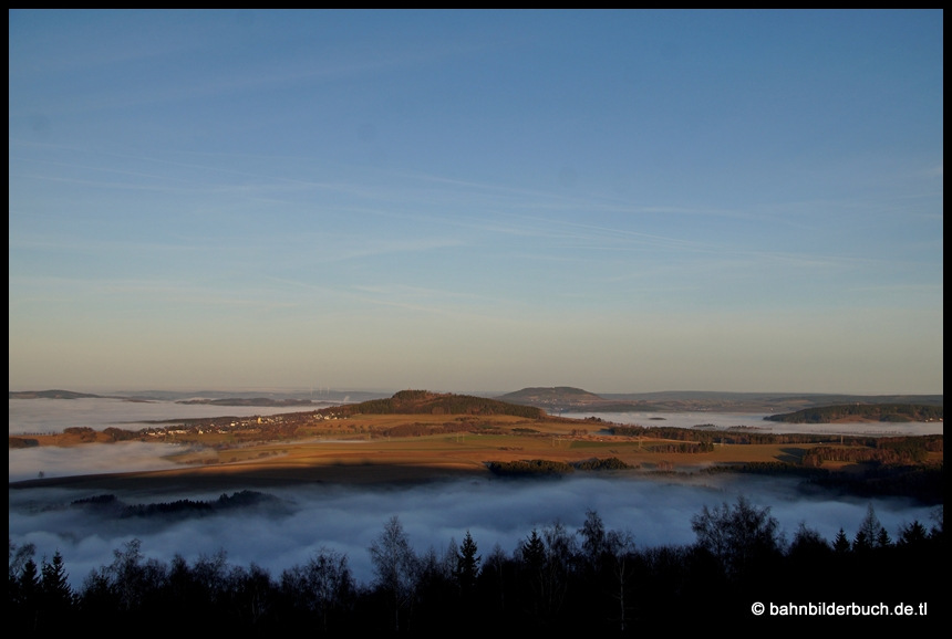 Als Zugabe noch eine Aufnahme vom Sonntag, wo der Nebel hartnäckig in den Tälern hing. Blick vom Oberbecken Markersbach kurz vor dem Sonnenuntergang zum Scheiben und Pöhlberg.