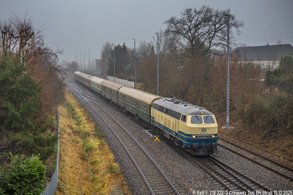 Wo auch als erstes der Zug der Press aus richtung Aue in den Bahnhof einfuhr mit 218 333-3 und nicht mit der angekündigten 86er