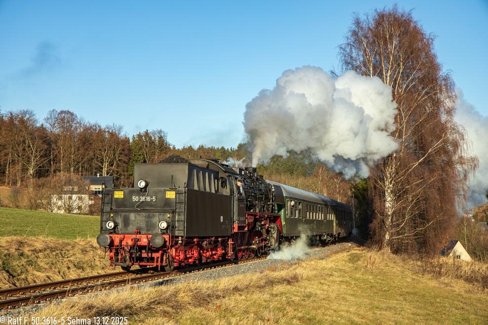 Als abschluss ging es nochmal an die Bsg Linie zur Erzgebirgischen Aussichtsbahn mit der 50 3616-5 welche Tv die Steigung in Shema richtung Walthersdorf erklimmt