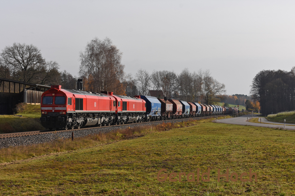 Mitte November fuhren einige Güterzüge zwischen Schwandorf und Nürnberg über Weiden, so auch die Rückleistung der Leerwagen von Nabaltec Schwandorf an die Nordsee GAG 60161 am 15.11.25 bei Freihung