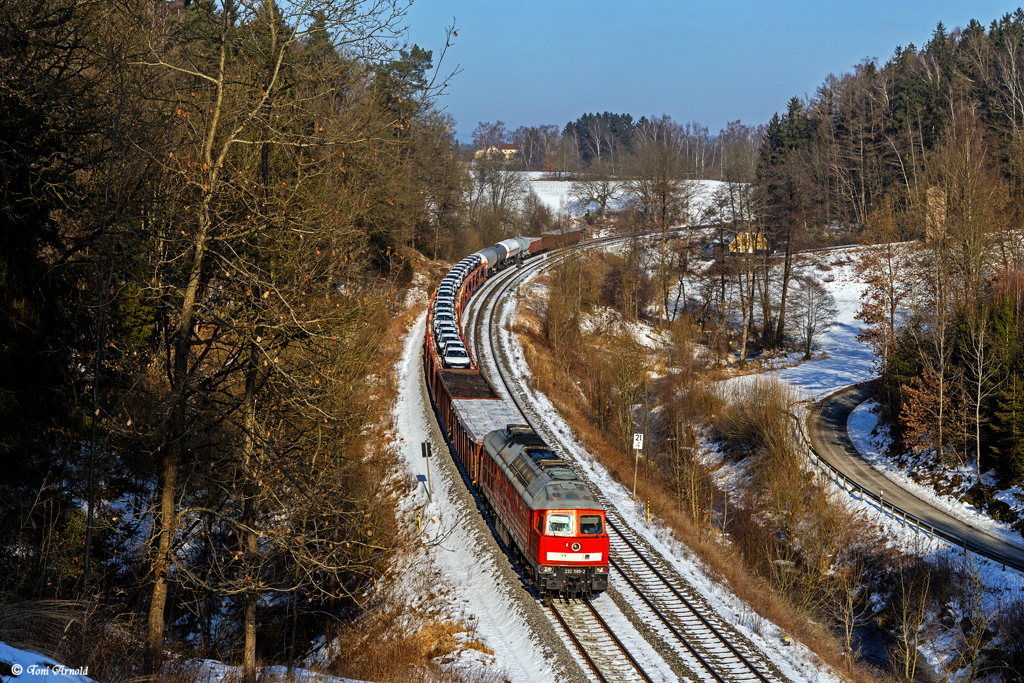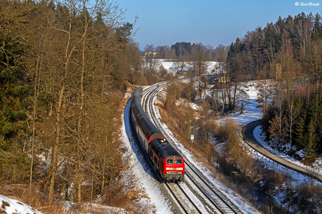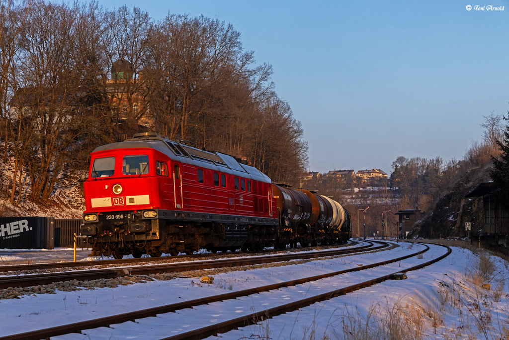 außer der ausführlichen Ausflügen nach Tschechien im Januar 2026, kam es auch zu einem kurzen Intermezzo in der Oberpfalz. Nach der Nachtschicht ging es nach einem kurzen Nickerchen los. Als erstes wurde der Bahnhof Windischeschenbach angesteuert, die erste 218 am RE2 gen Süden kam logischerweise noch in der Dämmerungsphase. Den EZ 45360 hatte ich aus Cheb bereits auf dem Schirm, neun abwechslungsreiche Kesselwagen hatte man in Most für den Zug gefunden. Seit Dezember 2025 findet für EZ 45360/45361 die Grundbildung oder Auflösung in Most statt, während sie für EZ 45366/45367 noch immer in Cheb stattfindet. 233 698 war eingeteilt und konnte im ersten Morgenlicht bei der Durchfahrt beobachtet werden, denn ab Marktredwitz war der Zug bereits wieder gut vor Plan unterwegs: